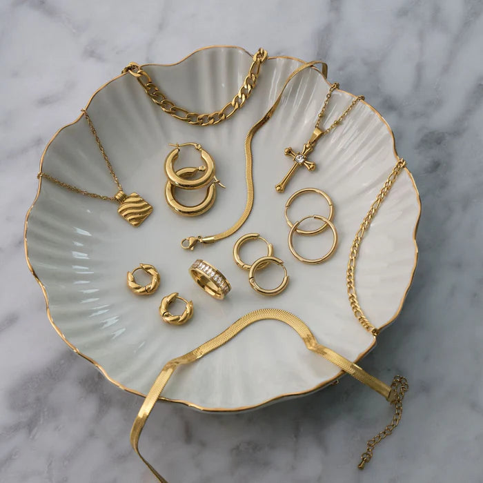 - Material: Stainless steel with gold, silver, or rose gold plating