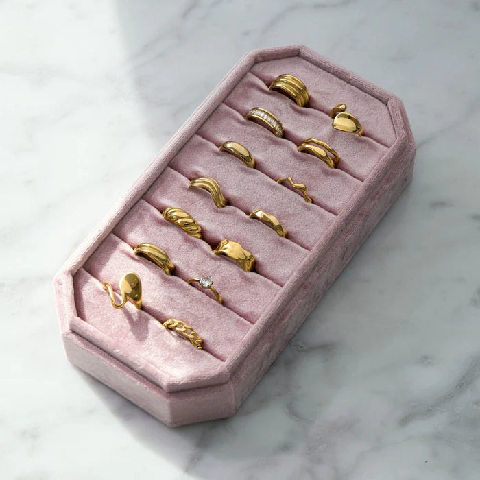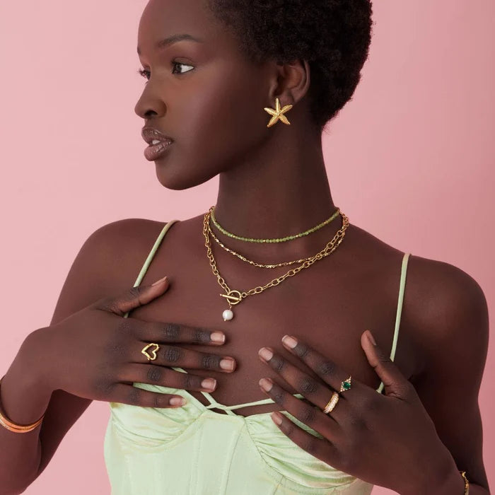 Crafted from high-quality stainless steel, the Starlit Ring is tarnish-free and water-resistant, offering lasting beauty for any occasion. Available in a range of sizes and finishes (gold, silver, and rose gold), this ring can be matched with other pieces from the collection for a coordinated look.